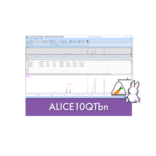 ALICE10QTbn は、定量 NMR(内標準法)の多検体処理・定量計算を効率的に実行することを目的とした、アプリケーション•ソフトです。